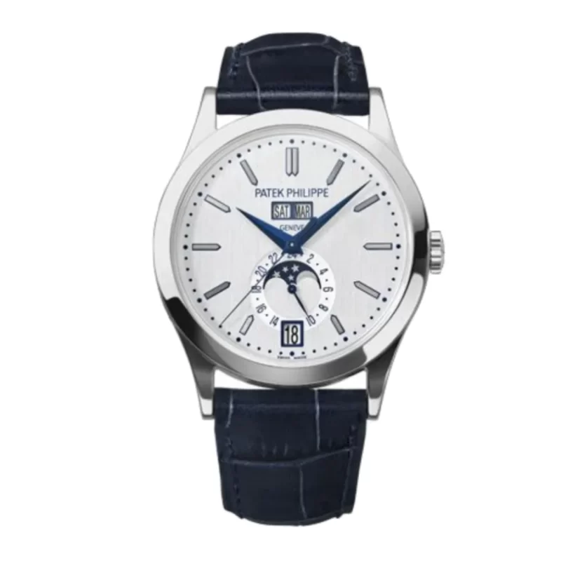The Patek Philippe 5396G-011 Replica showcases the elegance of traditional watchmaking with modern-day functionality. Its 38.5mm 904L stainless steel case is finished in refined white gold, housing an opaline white dial with white gold dauphine hands and applied hour markers. The signature double window at 12 o’clock presents the day and month, while a moon phase and date subdial at 6 o’clock complete the annual calendar display.